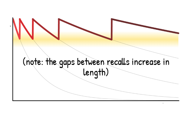 同样回忆次数的情况下,效率最大化的方式是逐渐拉长复习时间,并根据每次的难度反馈调整。
